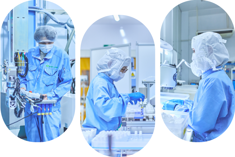 容器の成型から洗浄、検査、包装まで。 各工程において厳格な品質管理を行い、安定した製品づくりを行っています。 医療分野に求められる精度と安全性を支えるため、設備と体制の両面から品質を守っています。